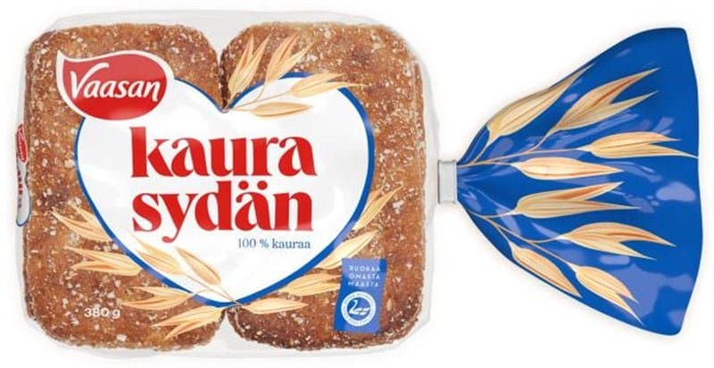 Vaasan Kaurasydän is a delicious oat bread baked from 100% oat flour, which, when eaten regularly, helps to lower cholesterol.